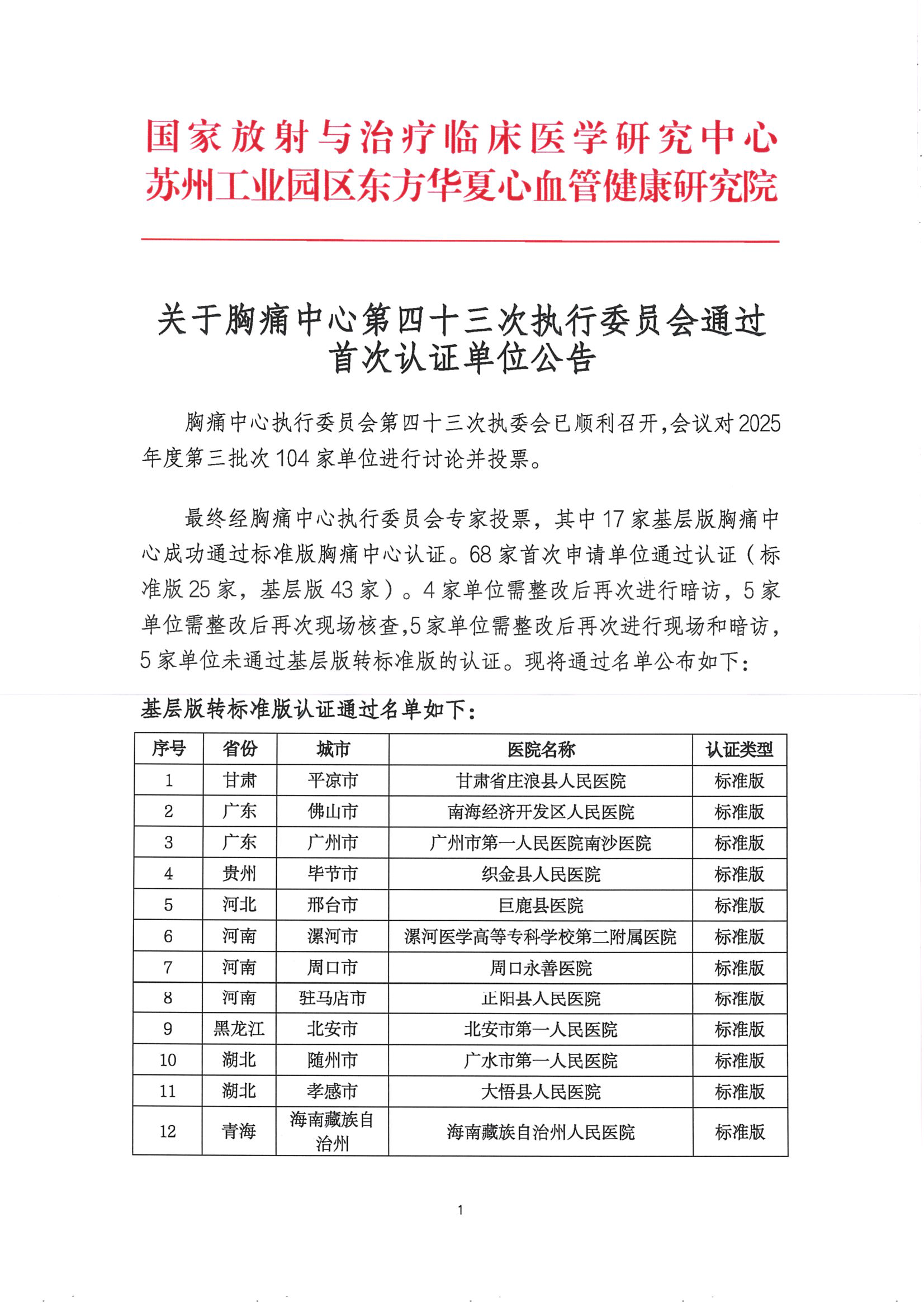 重要通知丨关于胸痛中心第四十三次执行委员会通过首次认证单位公告